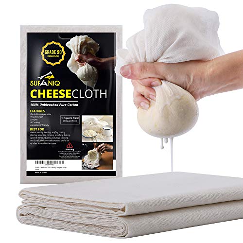 Sufaniq Cheesecloth Grade 90 – 9 Square Feet Unbleached 100% Organic Cotton Fabric Reusable Ultra Fine Muslin Cloth for Straining, Cooking, Cheesemaking, Baking (1 Sq Yard), Only $4.99