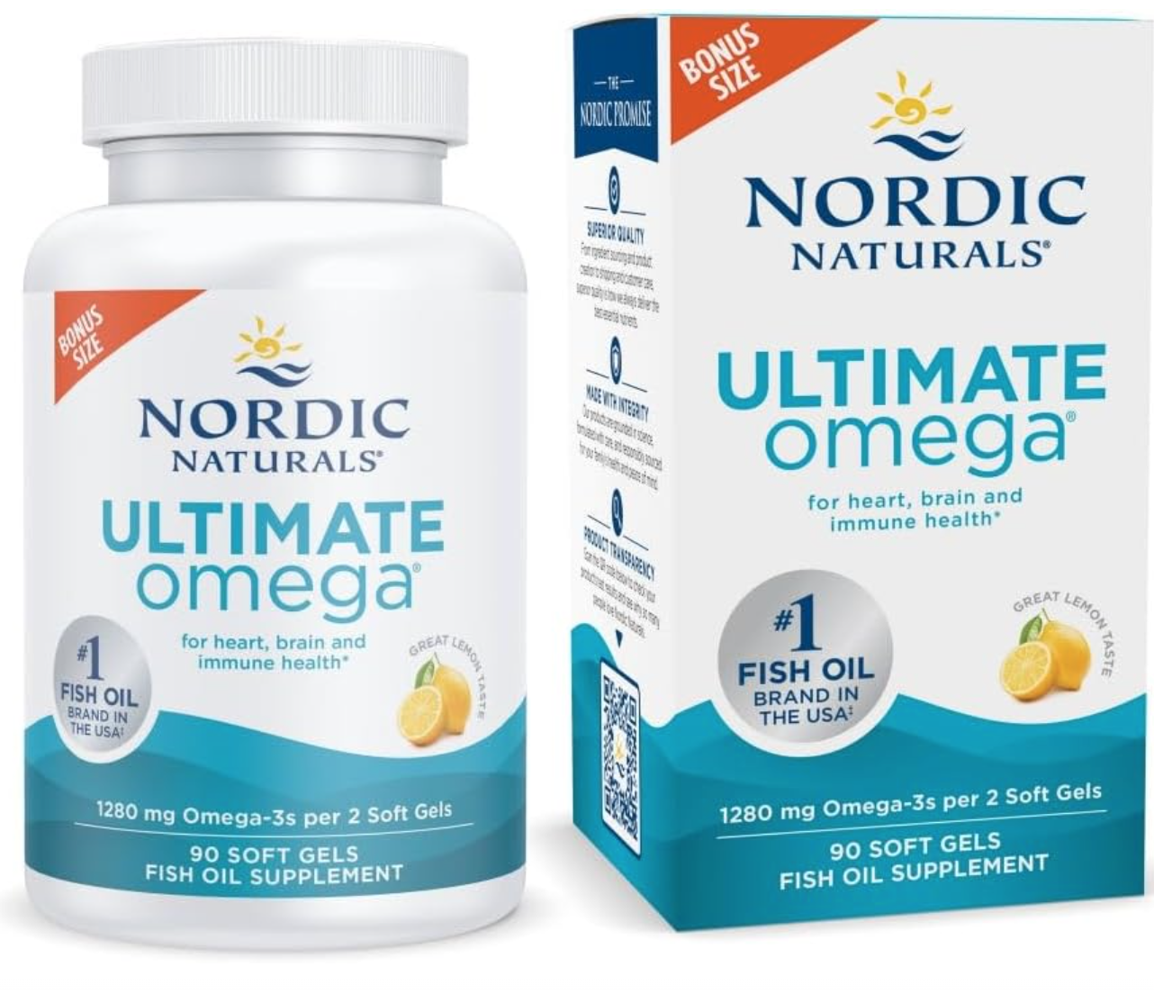 Nordic Naturals Ultimate Omega, Lemon Flavor - 90 Soft Gels - 1280 mg Omega-3 - High-Potency Omega-3 Fish Oil Supplement with EPA & DHA - Promotes Brain & Heart Health - Non-GMO - 45 Servings