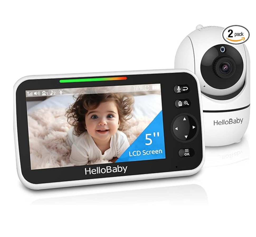 HelloBaby No WiFi Baby Monitor 5 Screen 30-Hour Battery Pan-Tilt-Zoom Video Upgrade with Camera and Audio, Night Vision, VOX, 2-Way Talk, 8 Lullabies and 1000ft Range, HB6550