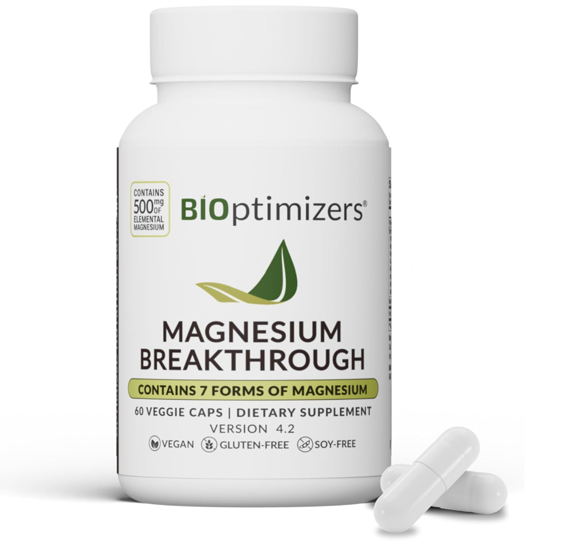 BIOptimizers Magnesium Breakthrough Supplement with 500mg - 7 Forms of Magnesium: Glycinate, Malate, Citrate, and More - Natural Support for Sleep and Cognitive Function -60 Capsules- Calming Vitamins