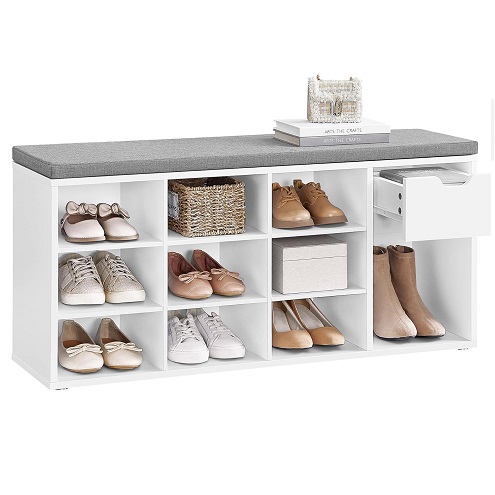 VASAGLE Storage Bench, Entryway Bench with Cushion, Drawer and Open Compartments, Bench with Storage, for Living Room, Bedroom, Closet, White and Gray ULHS24WT Only $62.00