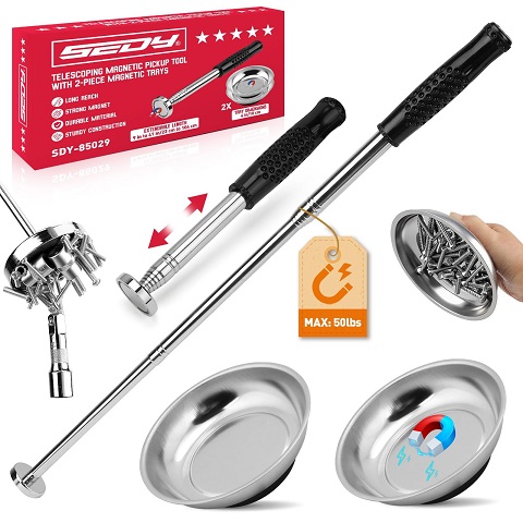 3 Pack Telescoping Magnetic Pickup Tool with Parts Tray, Magnet Stick Extendable up to 41in, Non-Slip Extendable Magnet Pickup Tool with 50lb Pull Force for Nail, Screws & Metal Debris, Only $9.99