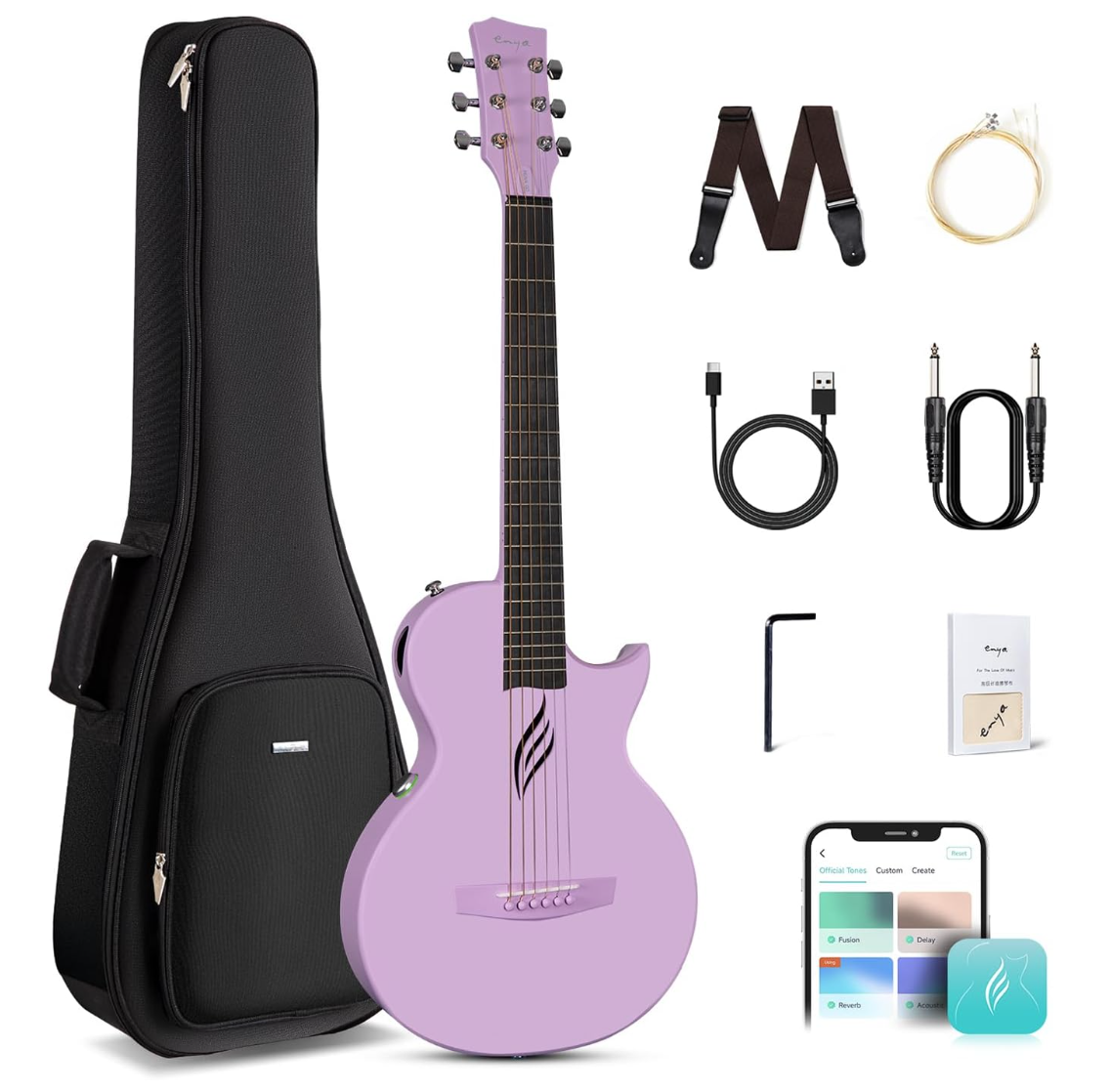 Enya NOVA GO SP1 Carbon Fiber Travel Guitar - 35 Acoustic Electric with Smart AcousticPlus Technology, Built-in Effects, USB Recording, Bluetooth Speaker, Beginner Bundle with Gig Bag & Accessories