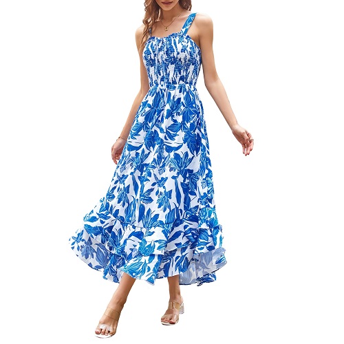 GRACE KARIN Women's 2026 Summer Floral Boho Dress Square Neck Strapped Swing A Line Sundress Beach Long Maxi Outfits Medium Blue White, Only $27.29