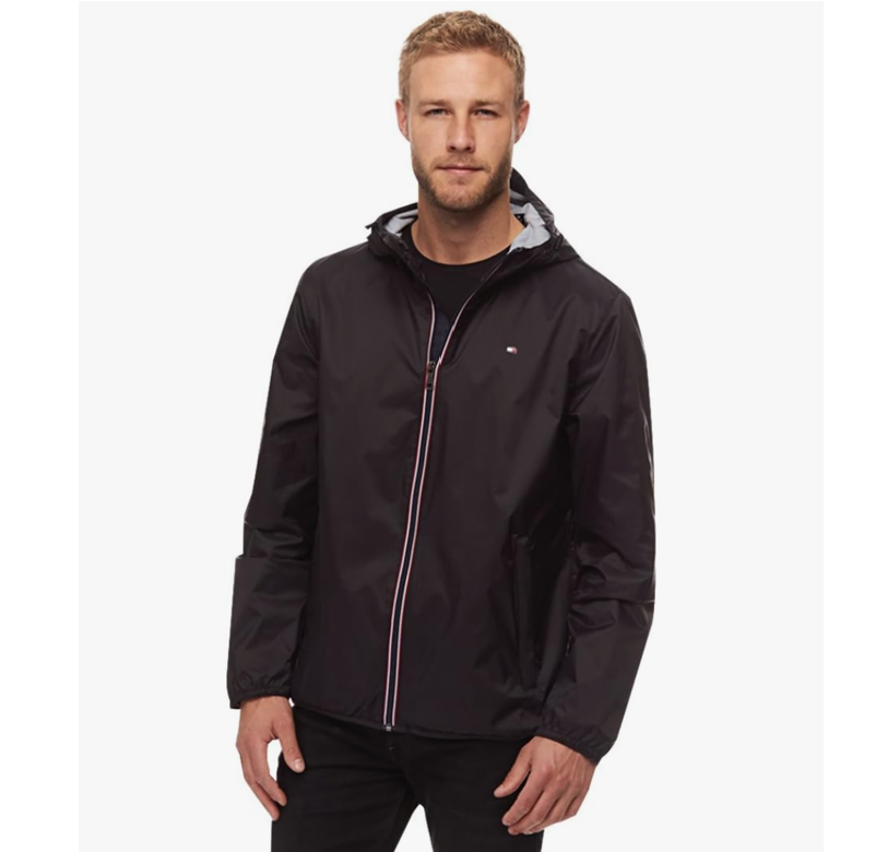 Tommy Hilfiger Men's Lightweight Active Water Resistant Hooded Rain Jacket