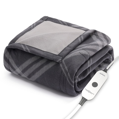 Sunbeam 50x60 Electric Heated Throw Blanket, 4 Heat Settings, Auto Shut-Off, Machine Washable - Grey Galway Plaid, Now Only $25.45