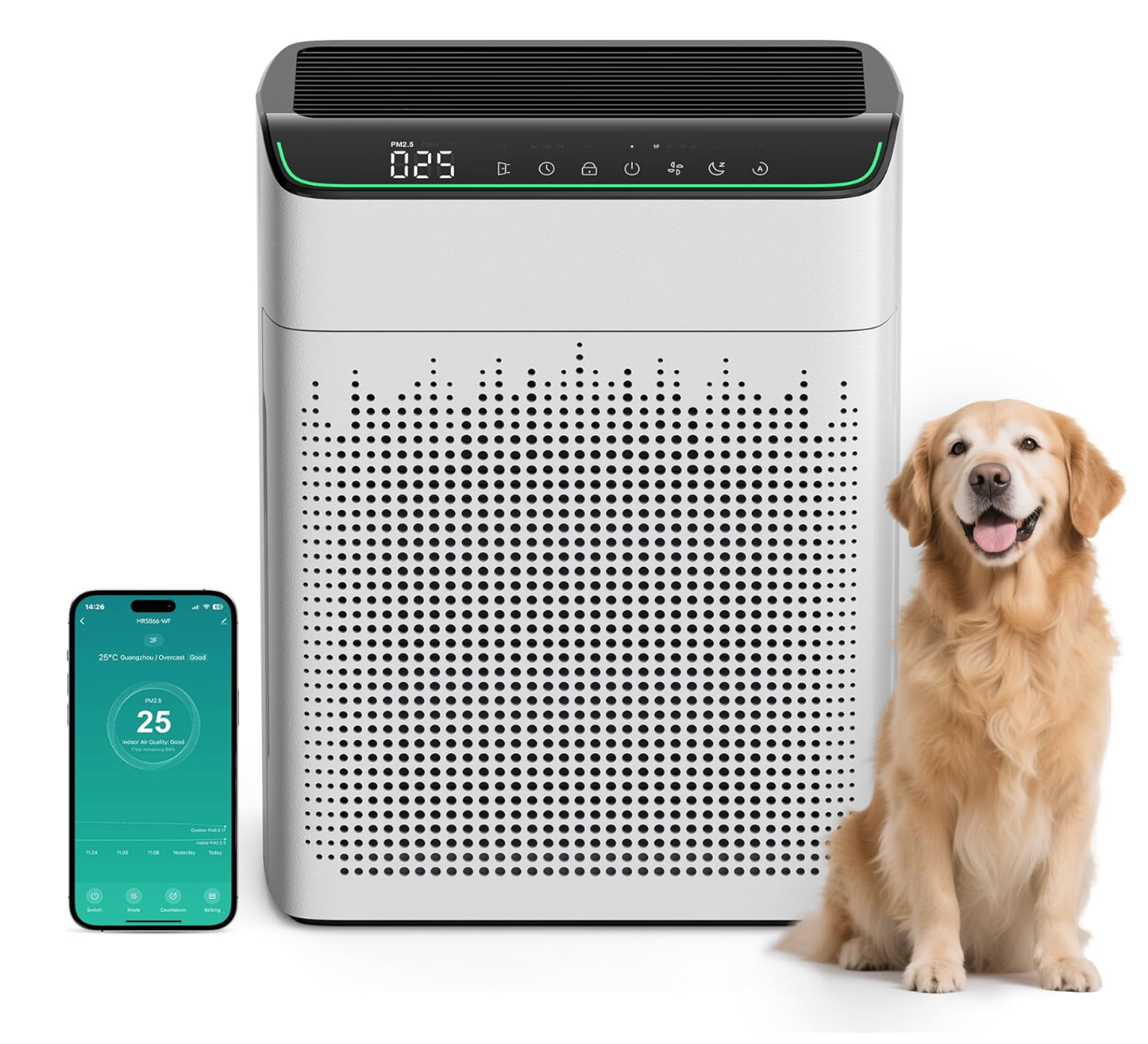 Air Purifiers for Home Large Room Up to 1690 ft² Double-sided Air Inlet Smart WiFi Alexa Compatible PM 2.5 Air Quality Monitor for Smoke and Odor 23dB Quiet 1 Pack+2 Pack HEPA Filters White