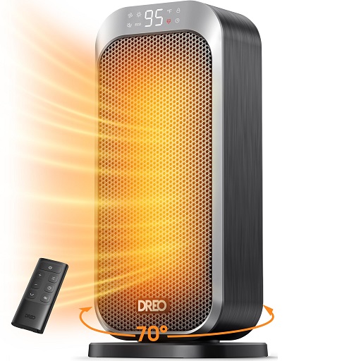 Dreo Space Heaters for Indoor Use, 70°Oscillating Portable Heater With Remote, 1500W PTC Electric Heater with Thermostat, Fast Safety Heat, 1-12h Timer, Only $44.97