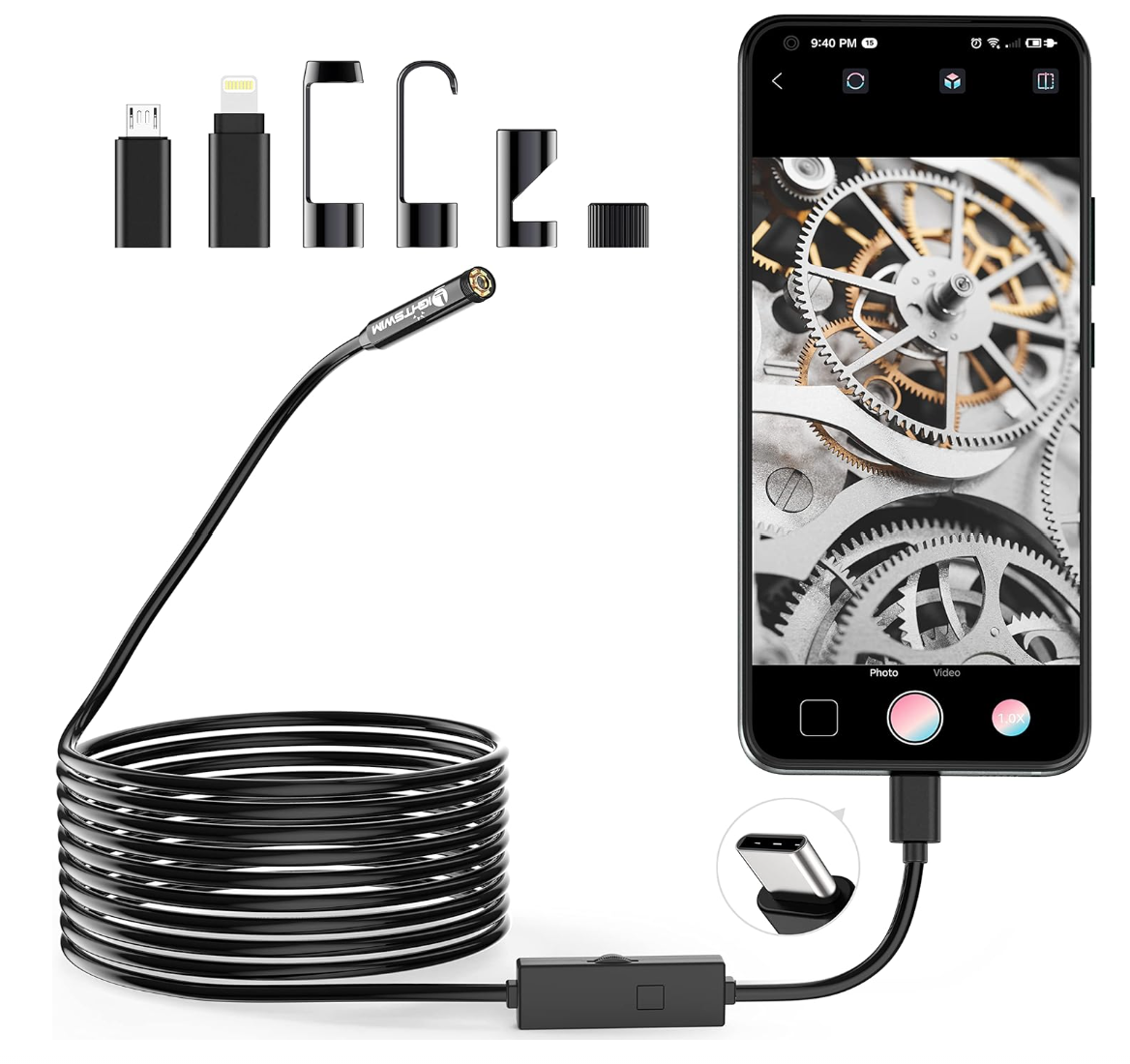 1920P Endoscope Snake Inspection Camera, Lightswim Type C Borescope, Scope Camera with 8 LED Lights for Android and iOS Smartphone, iPhone, iPad, Samsung (16.5 FT/5M)