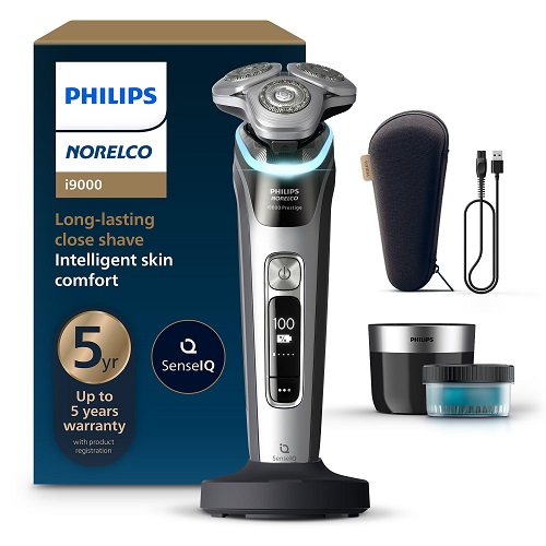 Philips Norelco Shaver i9000 Prestige, Wet & Dry Electric Shaver, Dark Slate Nova, SenseIQ Technology, Triple Lift & Cut System, 360 Rotating Dual SteelPrecision Blades, XP9204/85 Only $199.96