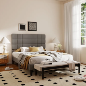 Modern Queen Size Platform Bed Frame with Fabric Upholstered Headboard