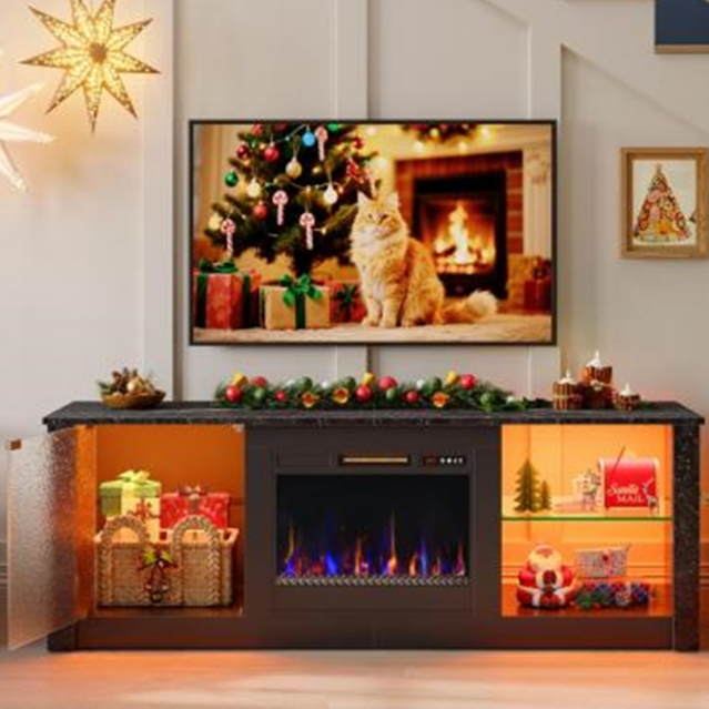 Bestier 63 in. Freestanding Electric Fireplace TV Stand