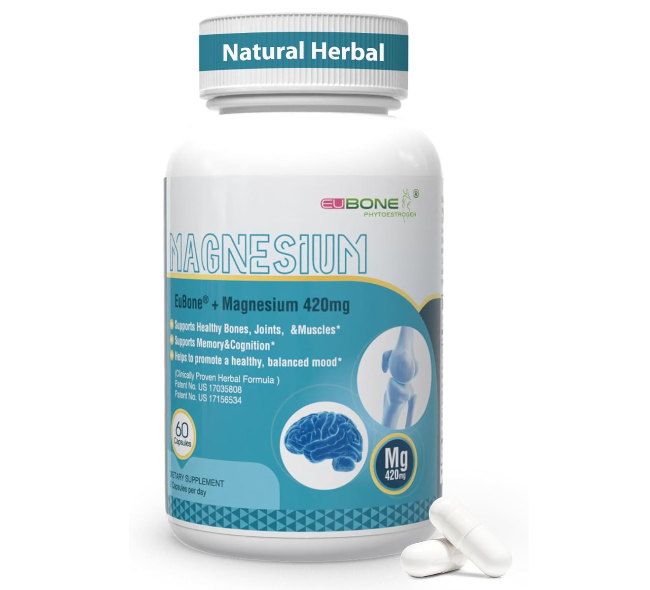 Magnesium Oxide and Glycinate Extra Strength 420mg, High Absorption Magnesium Supplement with EuBone and Manganese, Support Muscle, Joint & Bone Health, Improve Mood & Cognitive, 60 Capsules